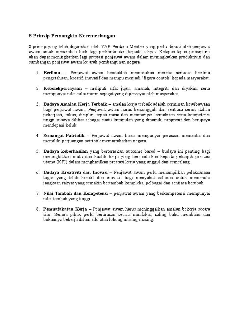 8 Prinsip Pemangkin Kecemerlangan Yang Telah Digariskan Dalam Agenda Nasional