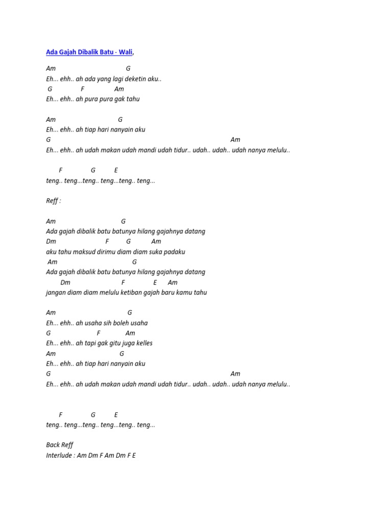 Lirik Dan Chord Gitar Wali Ada Gajah Di Balik Batu Lirik Lagu Dan Chord Gitar