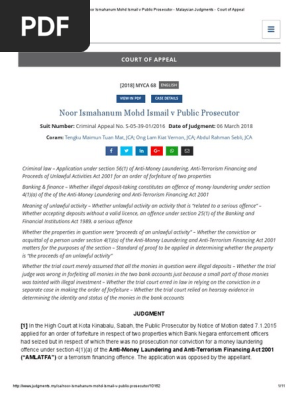 Noor Ismahanum Mohd Ismail V Public Prosecutor Court Of Appeal Asset Forfeiture Burden Of Proof Law