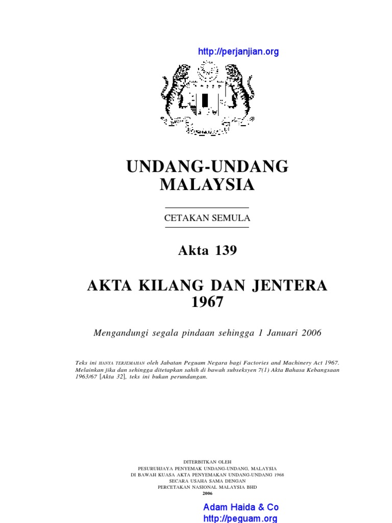 Akta kilang dan jentera 1967 pdf akta kilang dan jentera dan peraturan peraturan. Akta kilang dan jentera 1967 pdf akta kilang dan jentera dan peraturan peraturan. 1974 akta 139 berkuatkuasa mulai dari 1julai 1974.