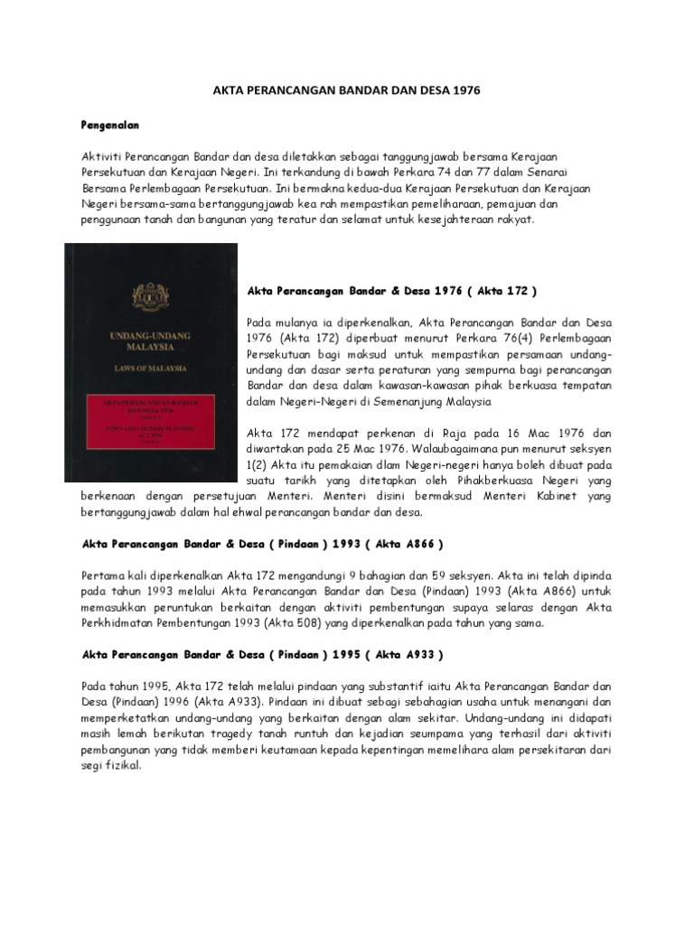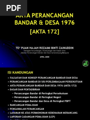 Akta Perancang Bandar Dan Desa Akta 172 Pnmb2u