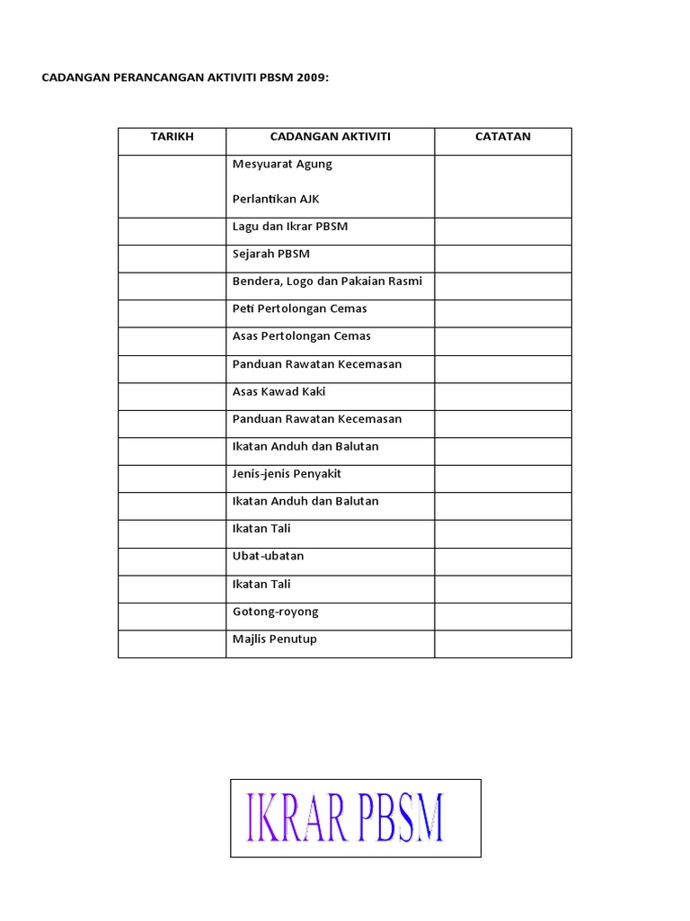Contoh Laporan Aktiviti Mingguan Pbsm