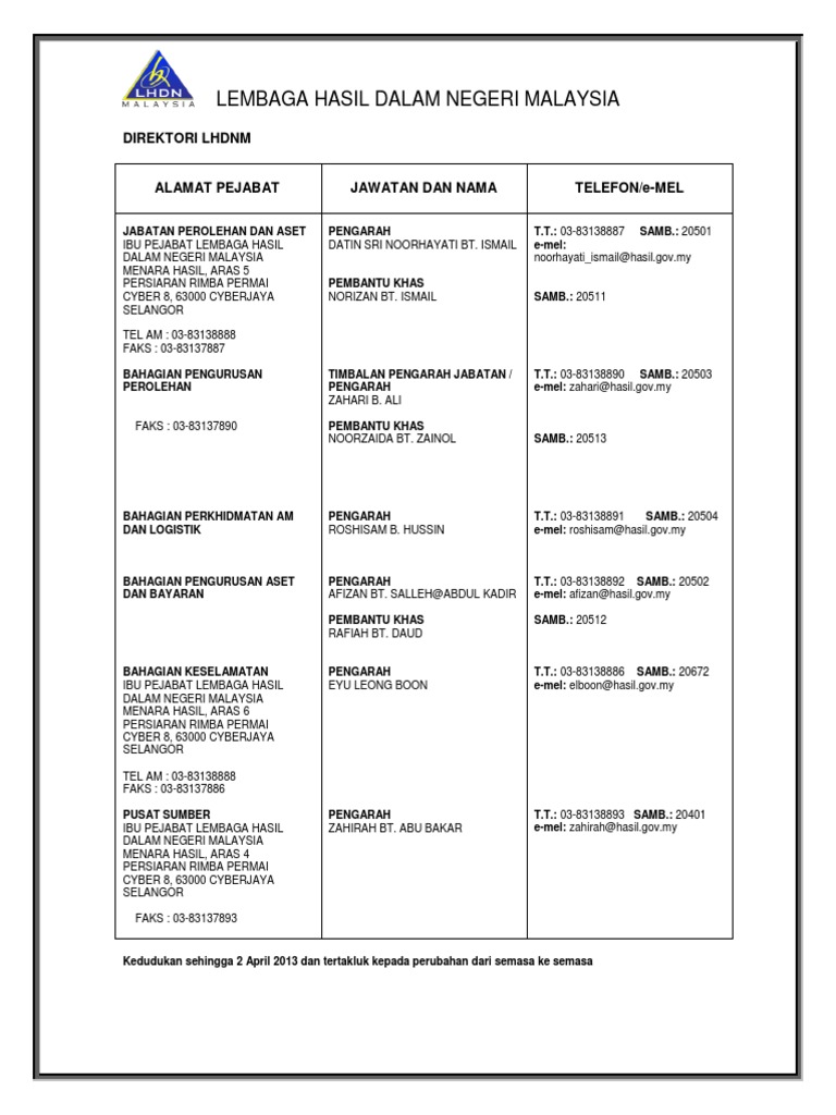 Lembaga Hasil Dalam Negeri Malaysia Direktori Lhdnm
