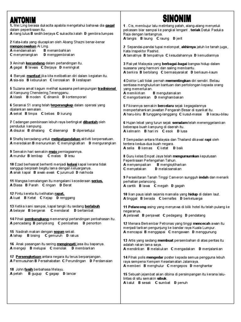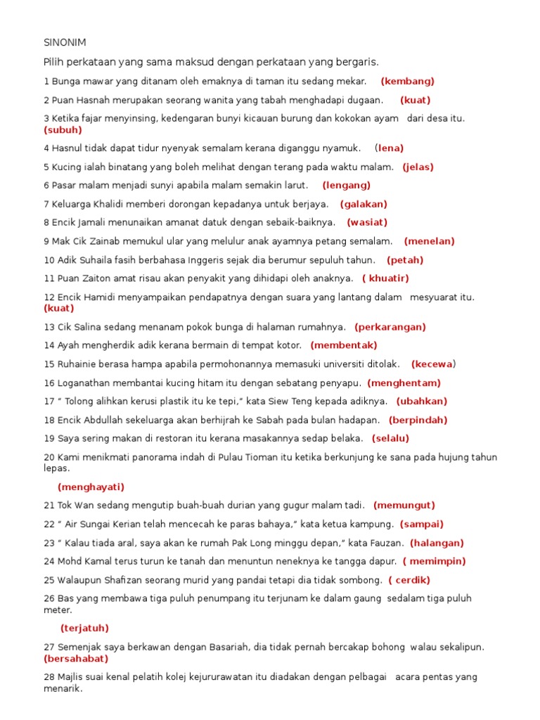 Mei M2 Sinonim Antonim Pdf Modul 18 Sinonim Antonim Praktis 1 Pilih Perkataan Yang Sama Maksud Dengan Perkataan Yang Bergaris 1 Bunga Mawar Yang Course Hero