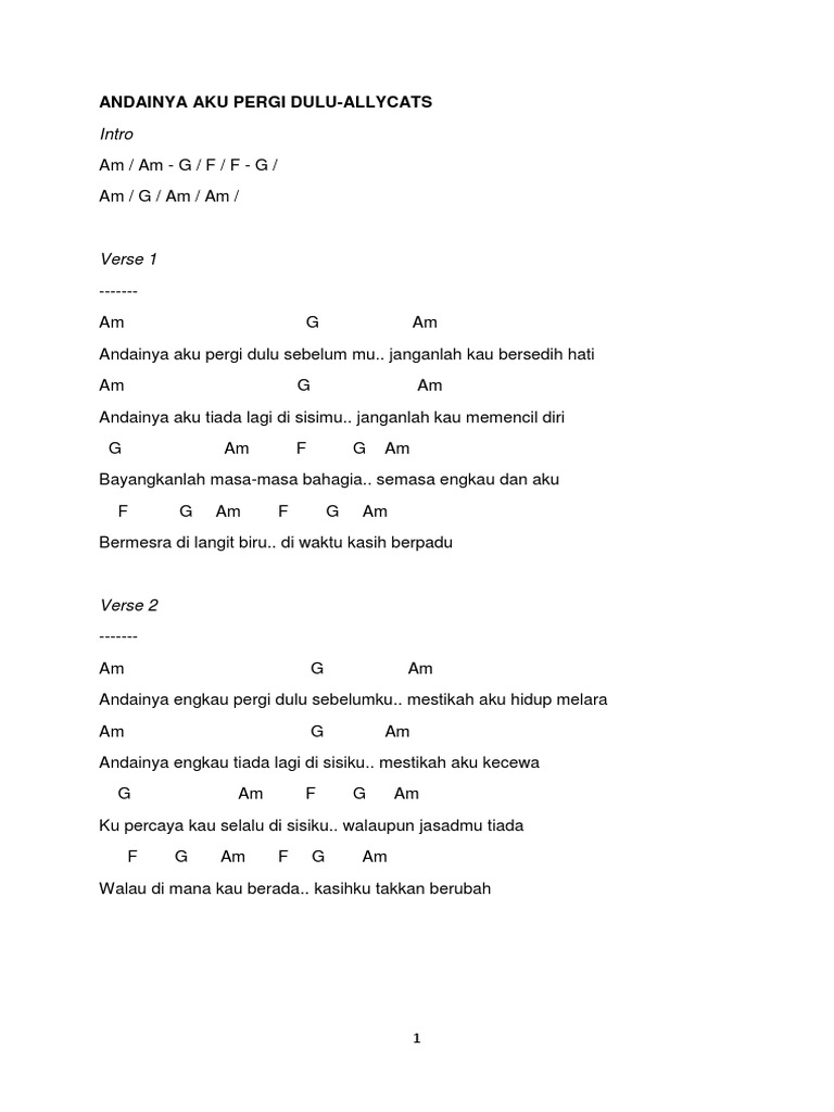 Alleycats Andainya Aku Pergi Dulu Chords Chordify