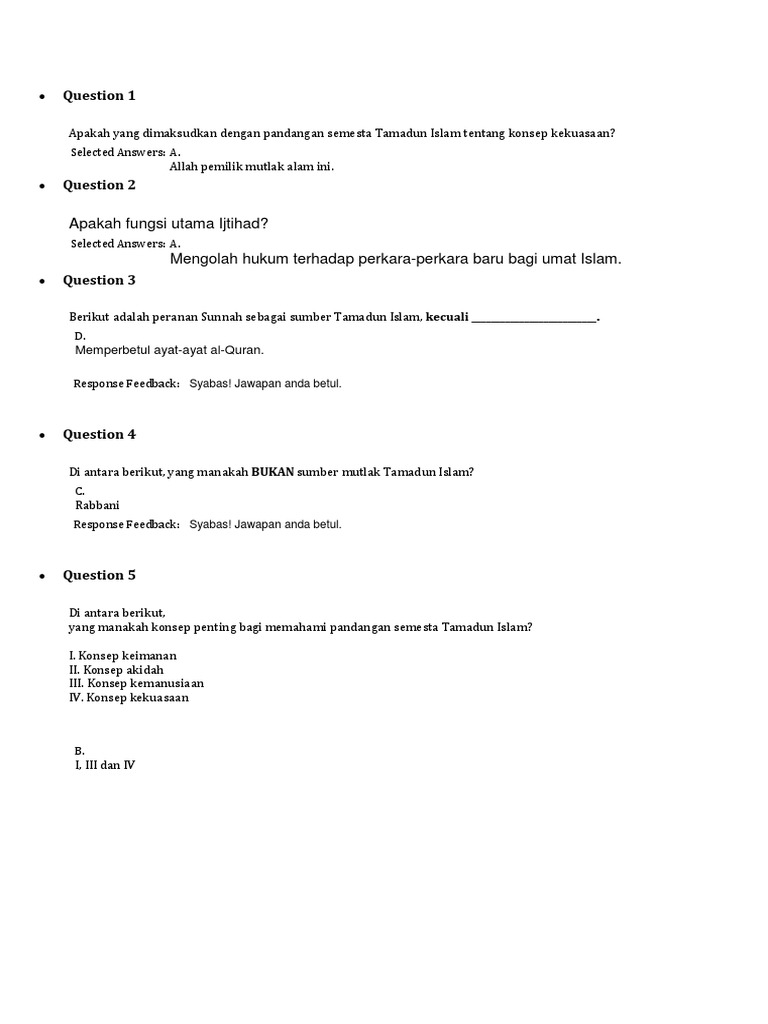 Quiz Pembelajaran 4 Docx Question 1 Apakah Yang Dimaksudkan Dengan Pandangan Semesta Tamadun Islam Tentang Konse P Kekuasaan Selected Answers A Allah Course Hero