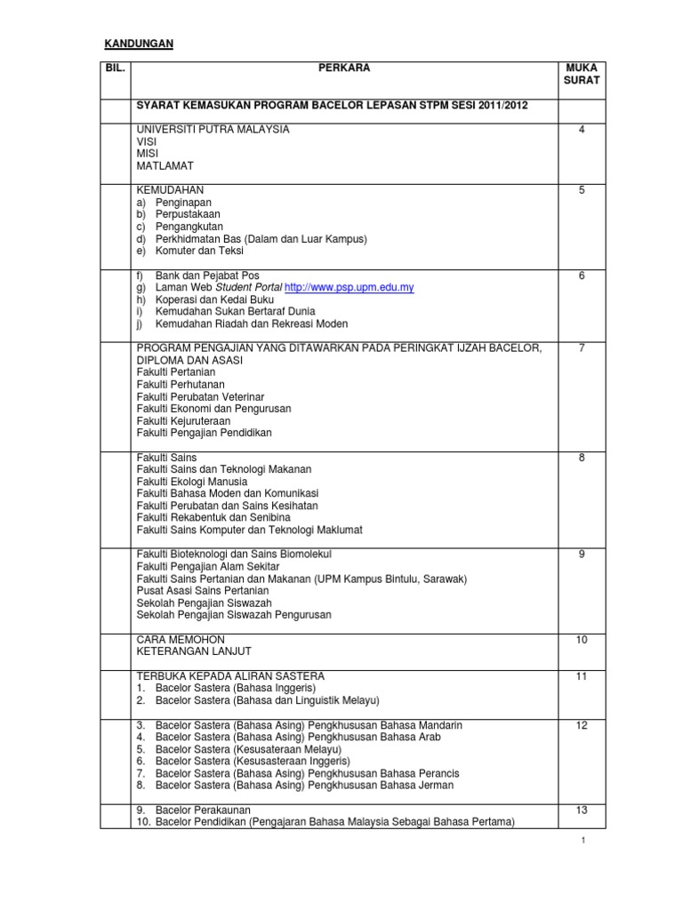 Bil Perkara Muka Surat Syarat Kemasukan Program Diploma Asasi Sains Pertanian Lepasan Spm Setaraf Sesi 2012 Pdf Free Download