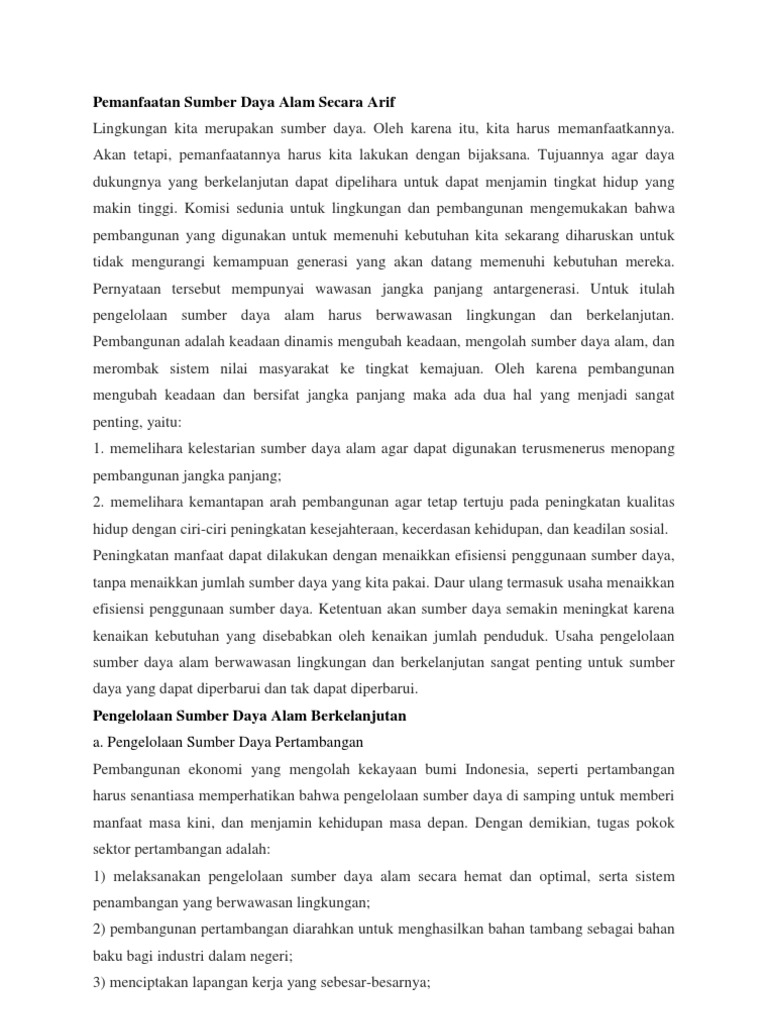 Pdf Pengelolaan Sumber Daya Alam Dan Pemanfaatan Rifda Latifa Academia Edu