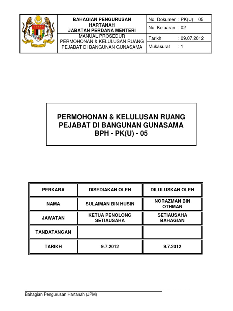 Bph Pk U 05 Permohonan Dan Kelulusan Ruang Pejabat Di Bangunan Gunasama