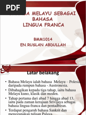 Bahasa melayu sebagai lingua franca. Mohd hassan hanis izrin and angterian siti mahani and yusop mohd sharifudin 2017 kegemilangan bahasa melayu sebagai lingua franca. Pedagang pedagang melayu yang berkeliling di indonesia memakai bahasa melayu sebagai lingua franca tulis lukman ali dalam ikhtisar sejarah ejaan bahasa indonesia 1998 hlm.