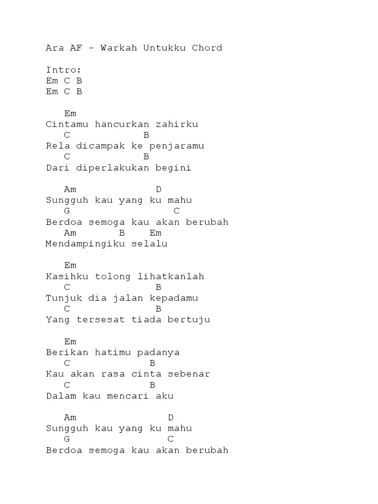 Lirik Lagu Ara Af Warkah Untukku Wattpad