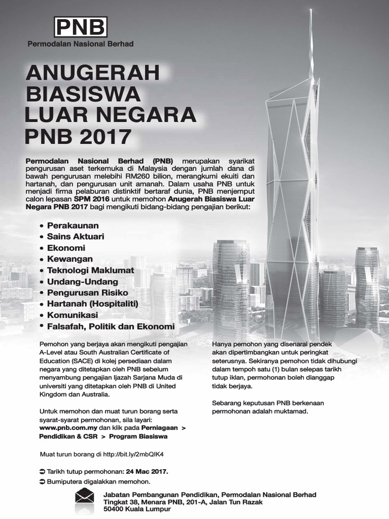Biasiswa Permodalan Nasional Berhad Pnb Luar Negara 2017 Mypendidikanmalaysia Com