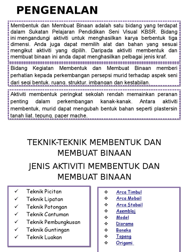 Membentuk Dan Membuat Binaan Pendidikan Seni Visual