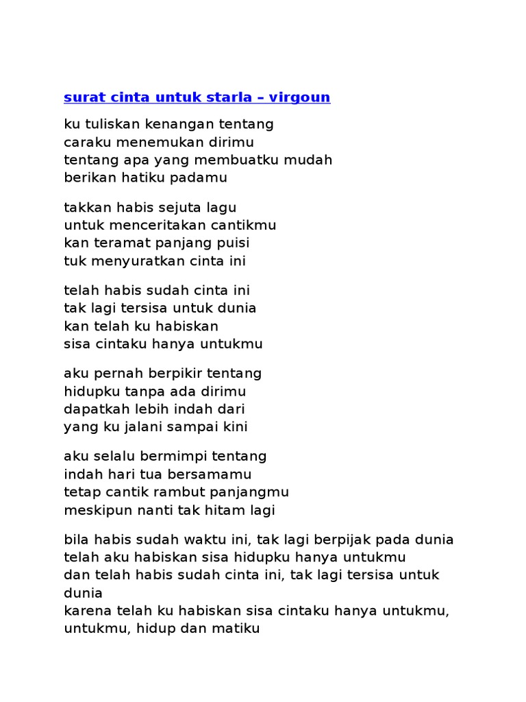 Lirik Lagu Surat Cinta Untuk Starla Doc