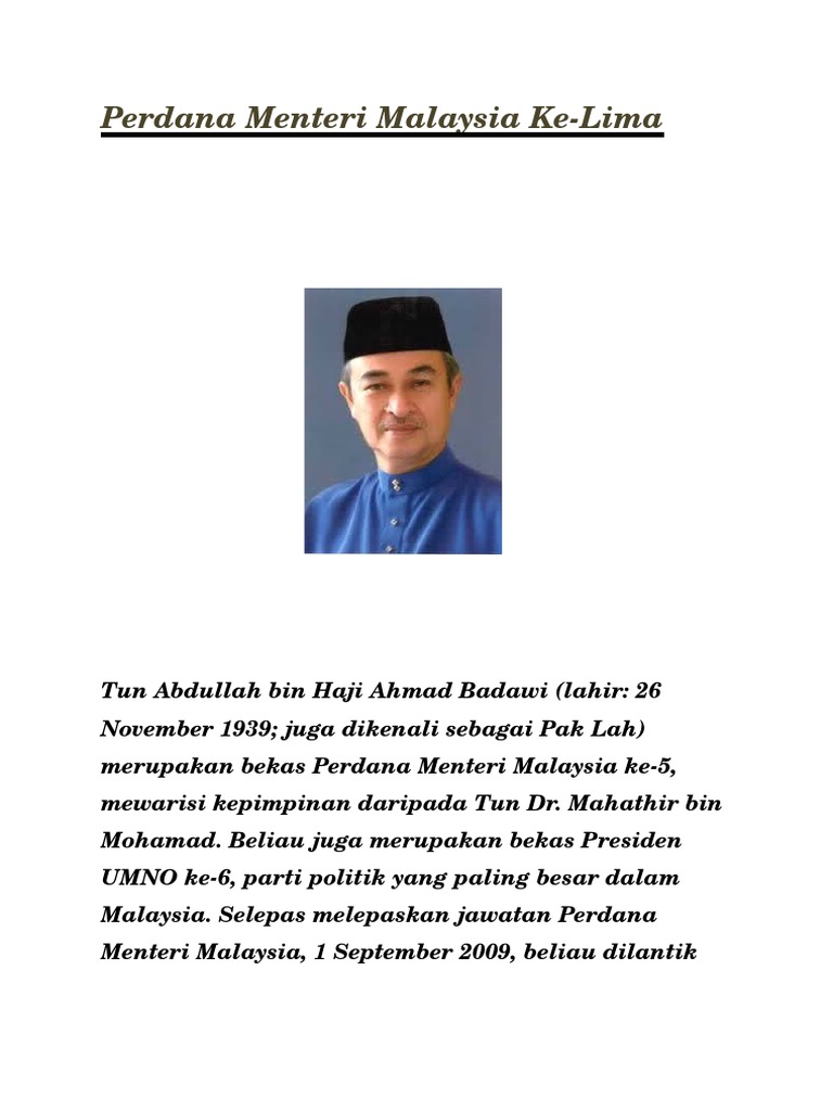 Biodata Tokoh Malaysia Biodata Tun Abdullah Bin Haji Ahmad Badawi Perdana Menteri Malaysia Ke 5