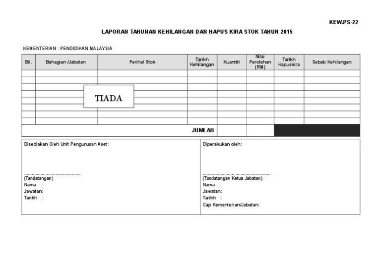 15 Lampiran Kew Ps 22 Laporan Tahunan Kehilangan Dan Hapuskira Stok