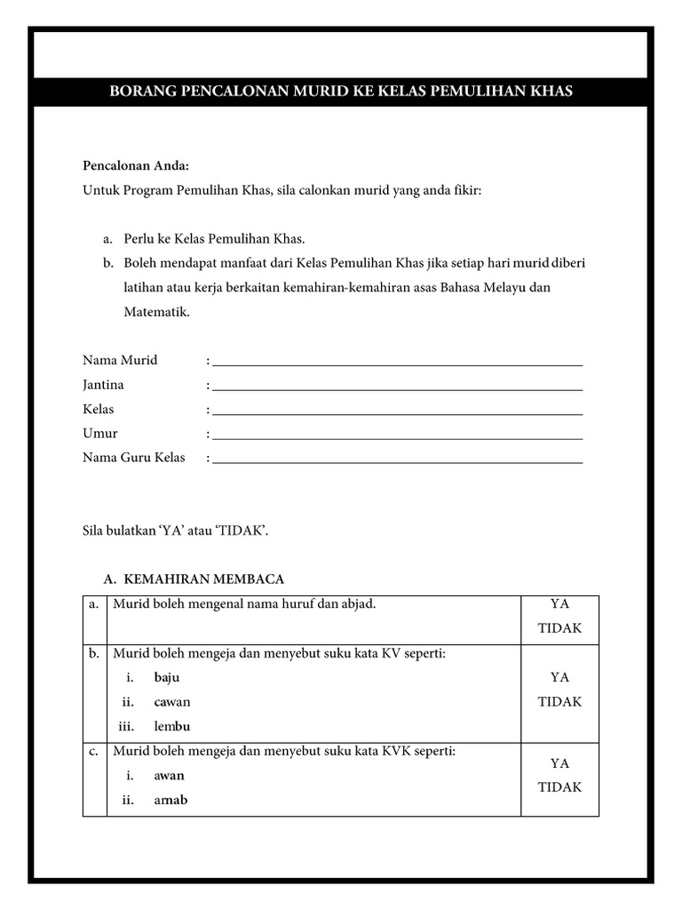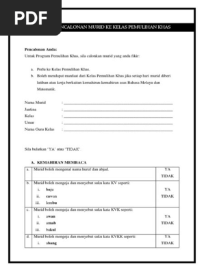 Borang Pencalonan Murid Ke Kelas Pemulihan Khas Docx
