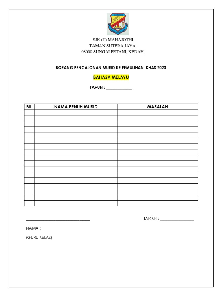 Bbm Pemulihan Pdf Word Borang Pencalonan Murid Ke Kelas Pemulihan Khas Sesi 2019