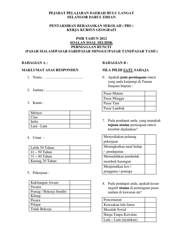 Pbs Stpm Contoh Soal Selidik Dan Penyusunan Data Dapatan Kajian