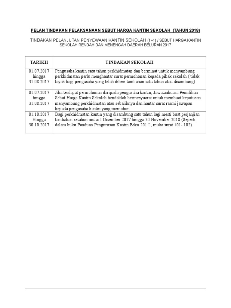 Plan Tindakan Sebut Harga Kantin Sekolah 20172018 Doc
