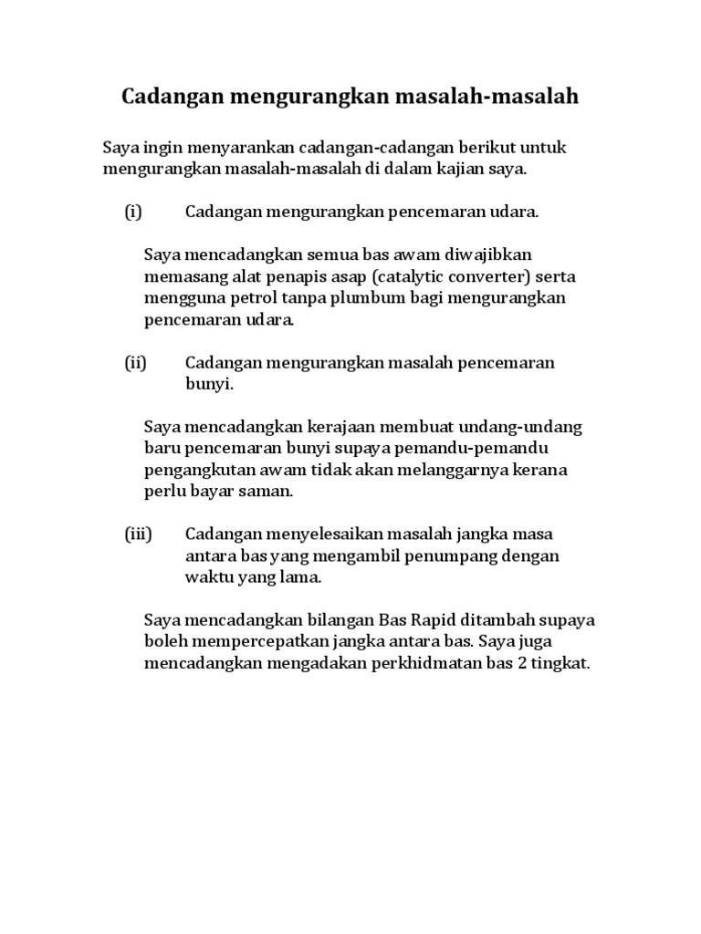 Cadangan Mengurangkan Masalah