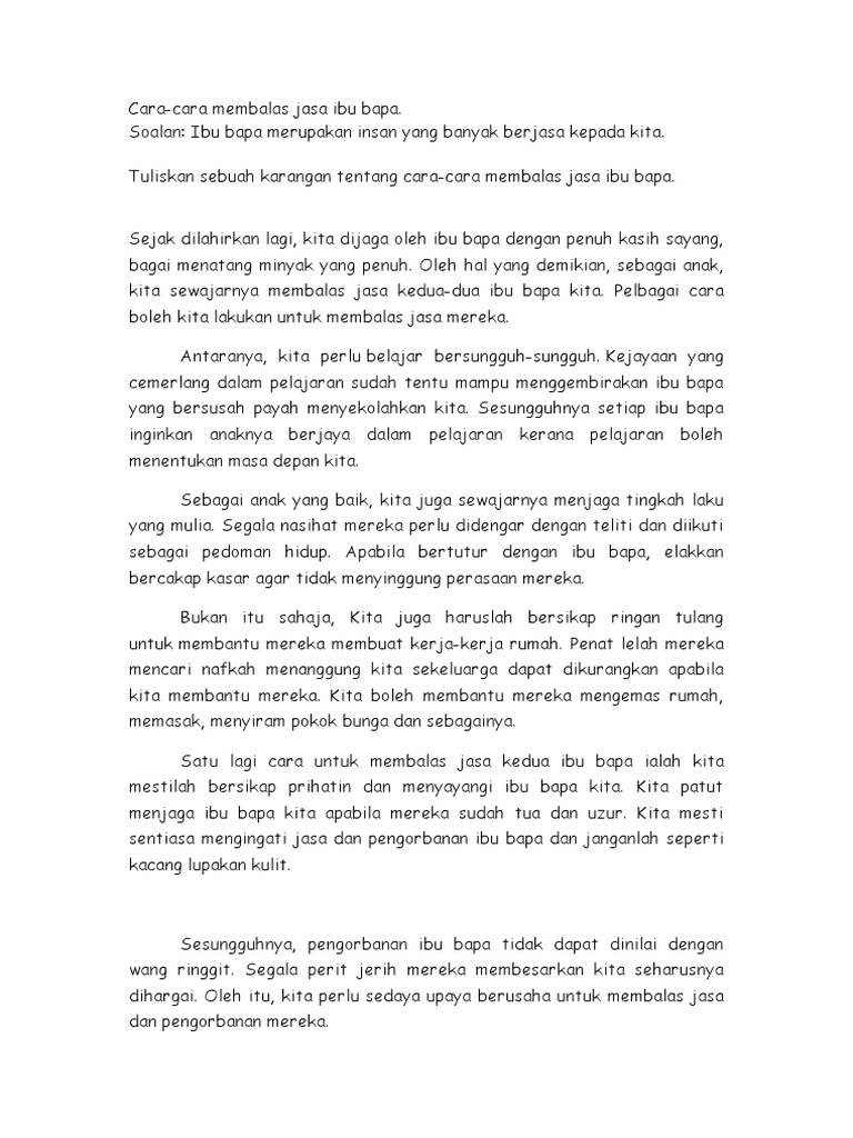 Cara Cara Menghormati Ibu Bapa Karangan Upsr