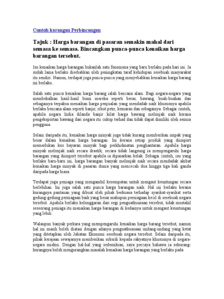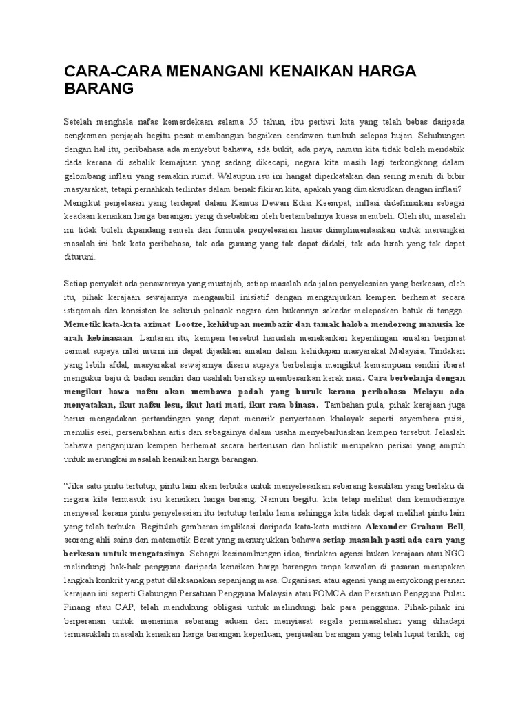 Karangan Pmr Langkah Mengatasi Kenaikan Harga Barangan