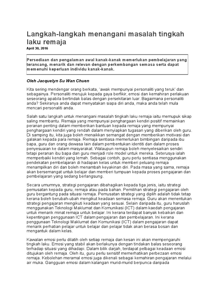 Doc Langkah Langkah Menangani Masalah Tingkah Laku Remaja Rosli Hashim Academia Edu