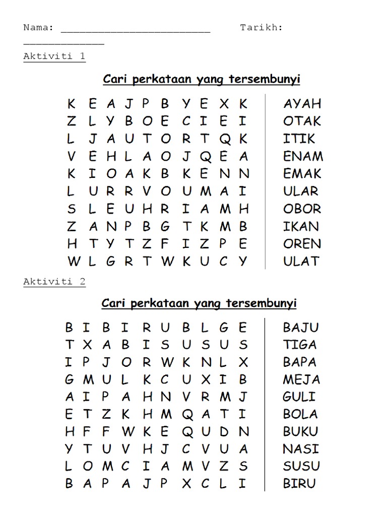 Pertandingan Mencari Perkataan Tersembunyi Google Search Word Search Puzzle Words Preschool Worksheets