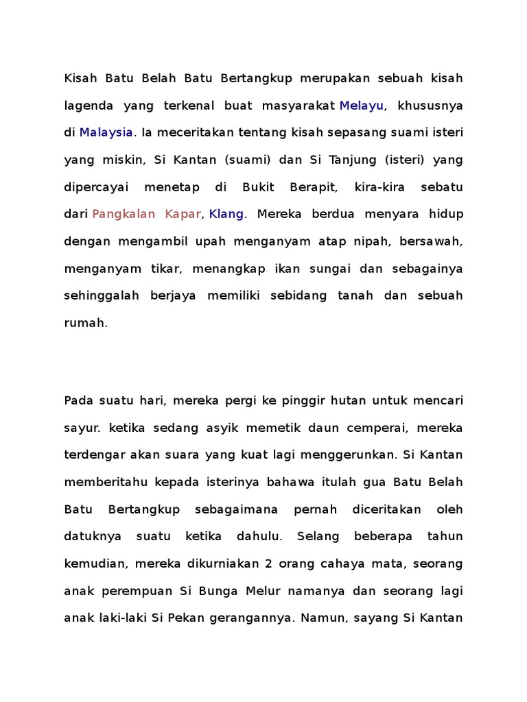 Cerita dan teladan 1 cerita dongeng popular 12 cerita lagenda 17 cerita melayu klasik 12 fable klasik 2 siri cerdik membaca 3 blog archive 2014 6. Melur dan pekan menyesal atas perbuatan mereka. Batu belah batu bertangkup sudah tiba janji kita masa lalu.