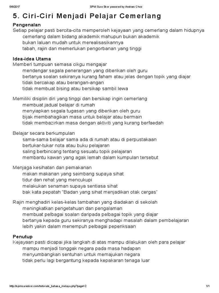 Spm Bm Karangan Ciri Pelajar Cemerlang Doc Document