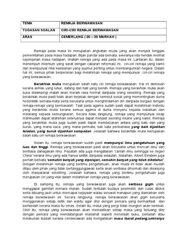 Karangan Ciri Ciri Remaja Berwawasan