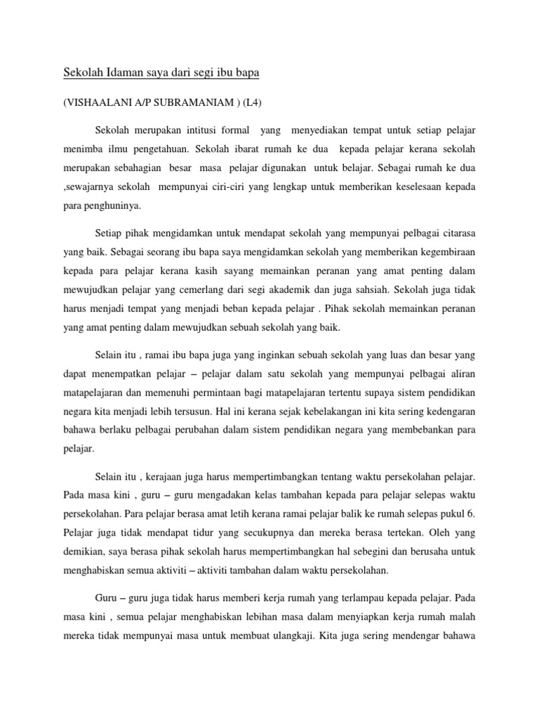 Sekolah Idaman Saya Dari Segi Ibu Bapa