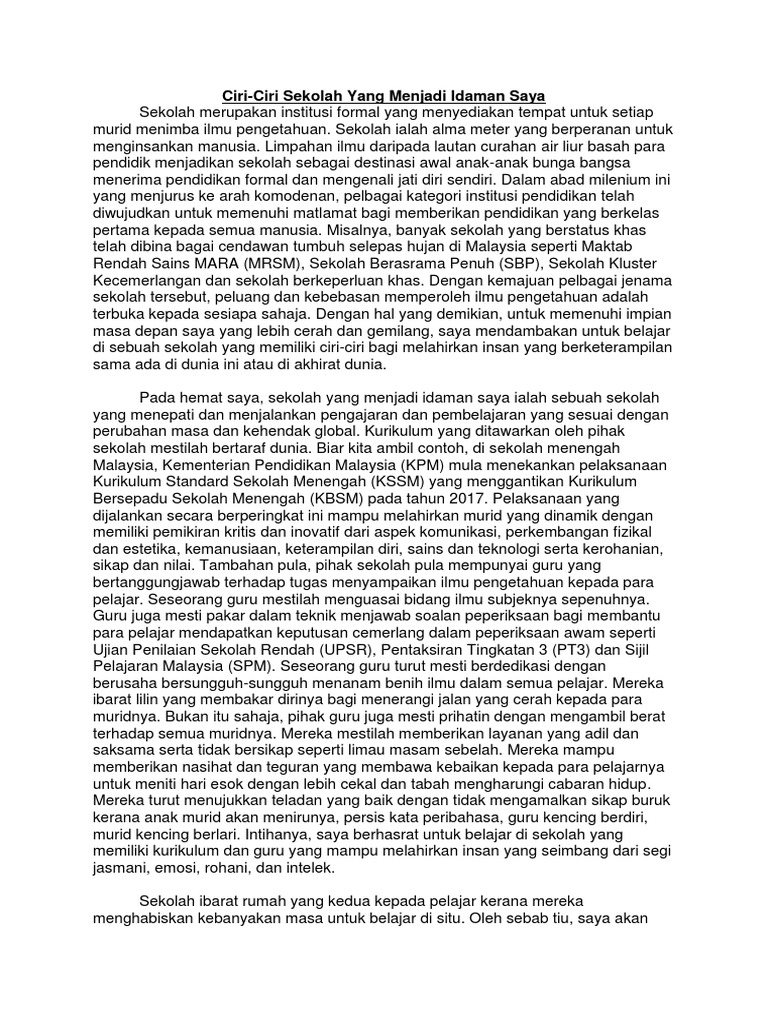 Ciri Ciri Sekolah Yang Menjadi Idaman Saya