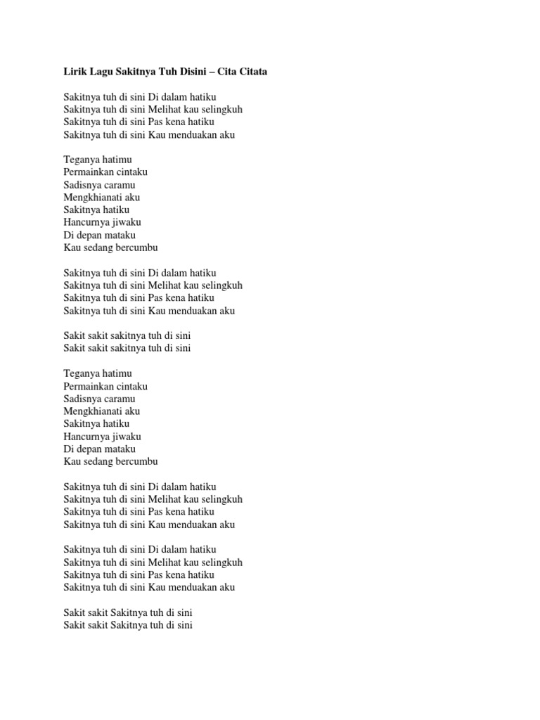 Cita Citata Sakitnya Tuh Disini With Lyrics Chords Chordify