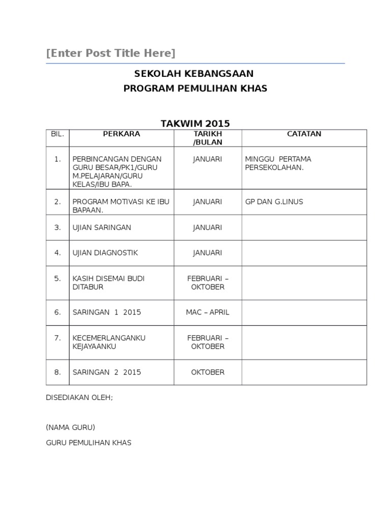 Contoh Kertas Kerja Program Perjumpaan Ibu Bapa Murid Tahun Satu Kelas Pemulihan Khas