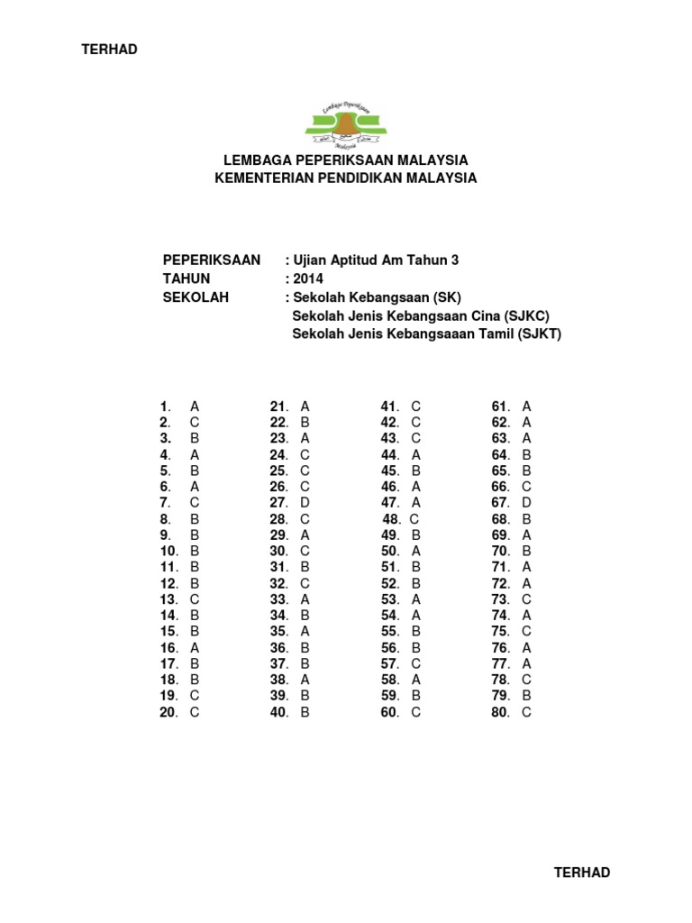 Kunci Jawapan Ujian Aptitud Am Tahun 3