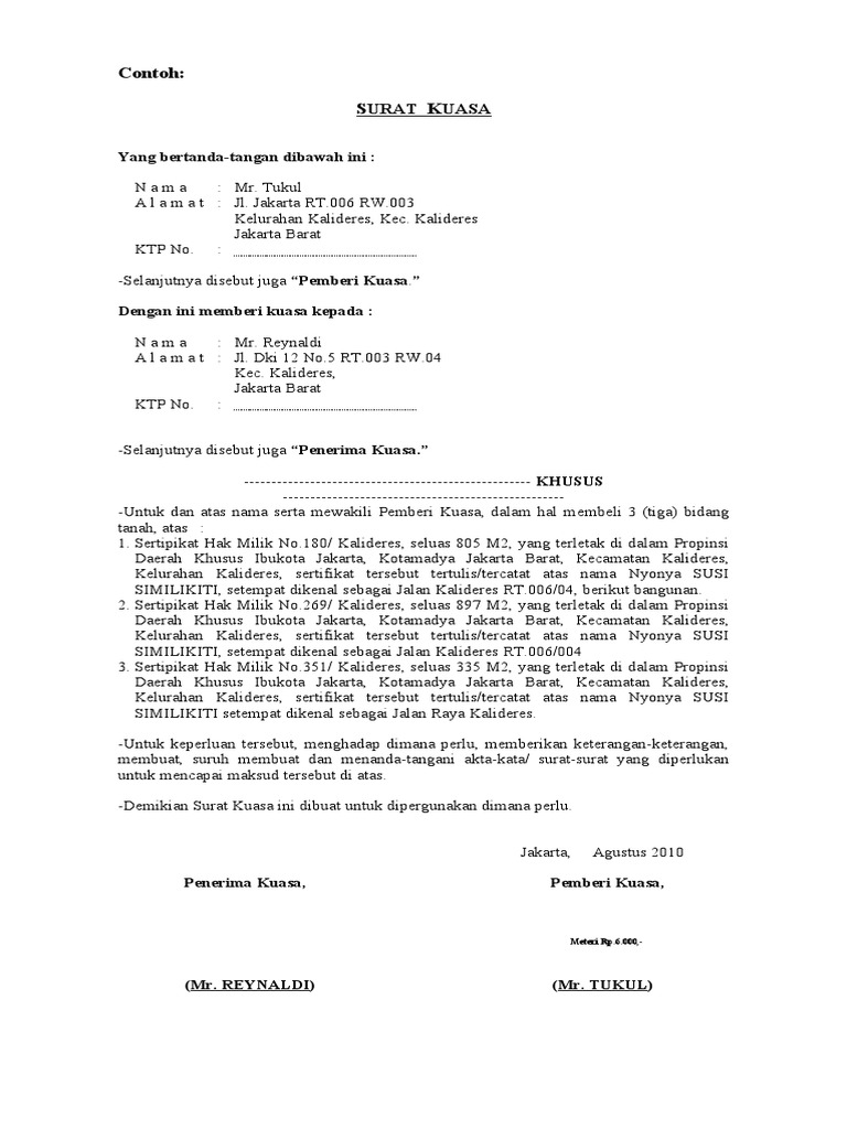 16 Contoh Surat Kuasa Tanah Untuk Jual Beli Dan Lainnya Contoh Surat