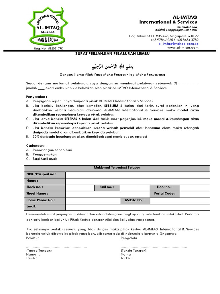 Surat Perjanjian Pelabur Contoh