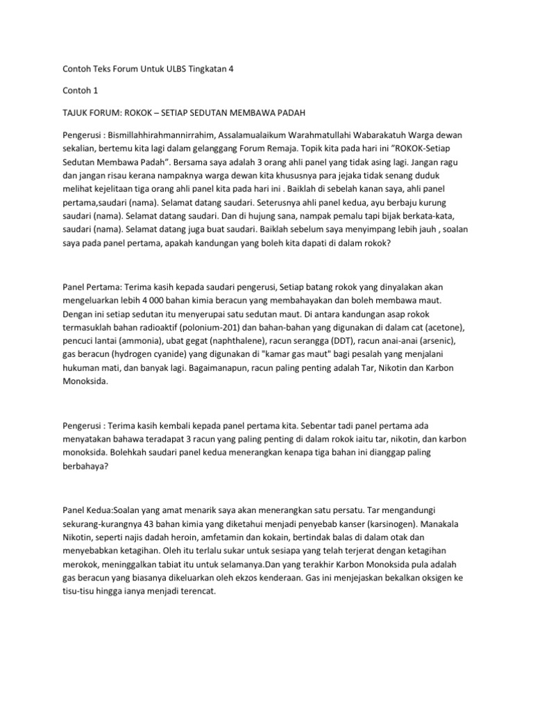 Contoh Teks Forum Untuk Ulbs Tingkatan 4