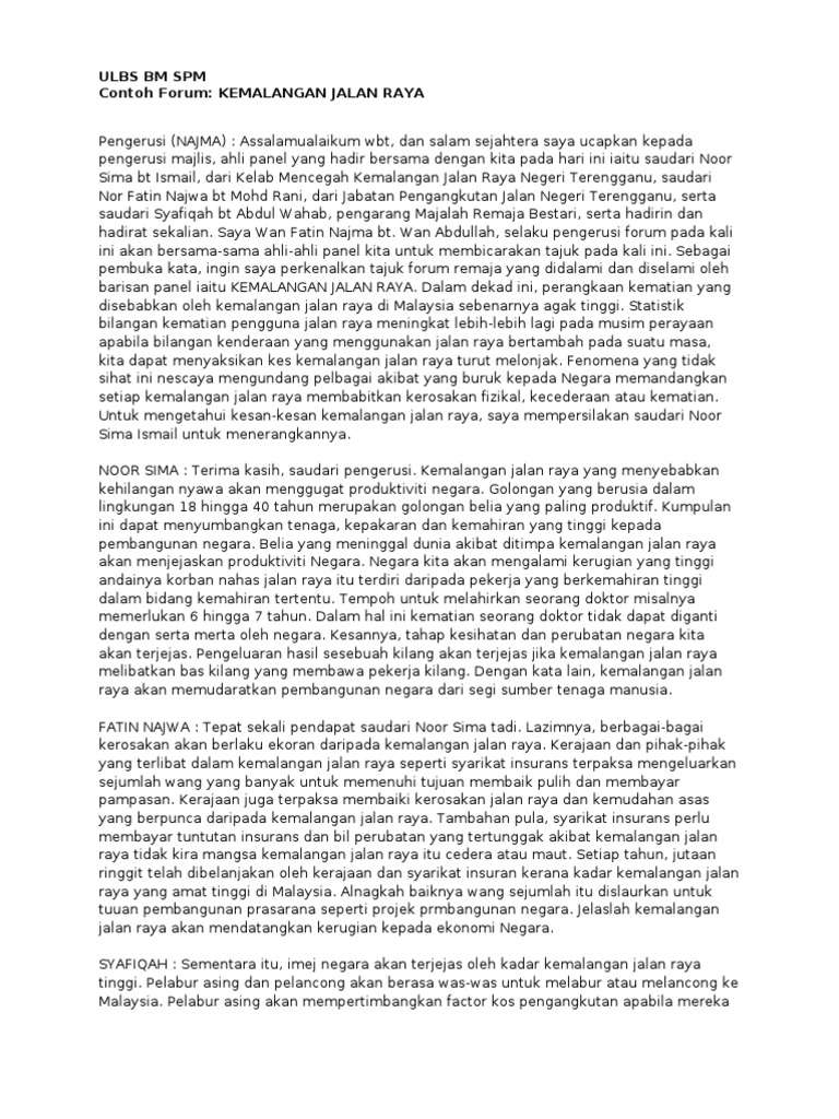 Contoh Dialog Ujian Lisan Bahasa Melayu Frasmi